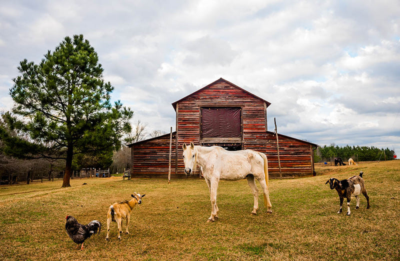 We decided to add a larger structure for the animals and visitors to enjoy in the pasture. Susan had a favorite old barn that she had been driving past since she was a young girl, and we were watching it fall into a state of disrepair. One day a For Sale sign went up on the pecan orchard where the barn stood, and Kat said "let's try and buy the barn!". Kat called the son of the old farmer who had built the barn in 1912, and had recently passed away and we bought it! Then we had to move it 150 miles! After moving it in Uhaul and Ryder trucks, it stands in our pasture looking much the same, and has become the heart of the farm, used for weddings, birthday parties, yoga, camps and a place for the animals, of course!