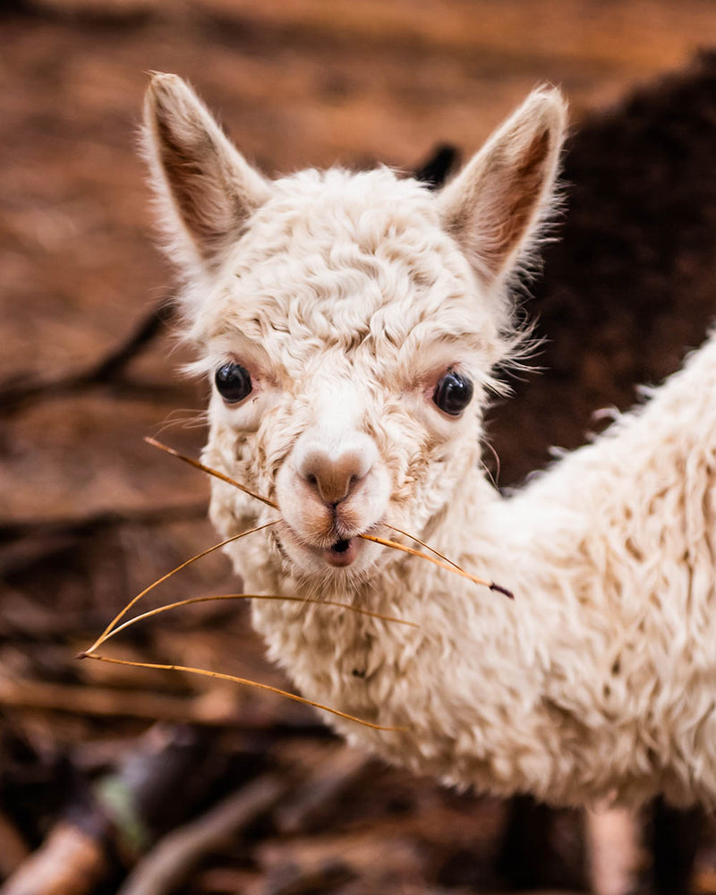 We rescued a young male alpaca named Dusty, as part of a herd whose owner couldn't care for the animals anymore. Vets from UGA Vet School decided that he was too young to neuter, but we found out that was a miscalculation (he was just small) when we had 2 surprise babies born in October of 2018. Baby May and Baby June have brought so much joy to the farm, and have touched so many lives of our volunteers and visitors.